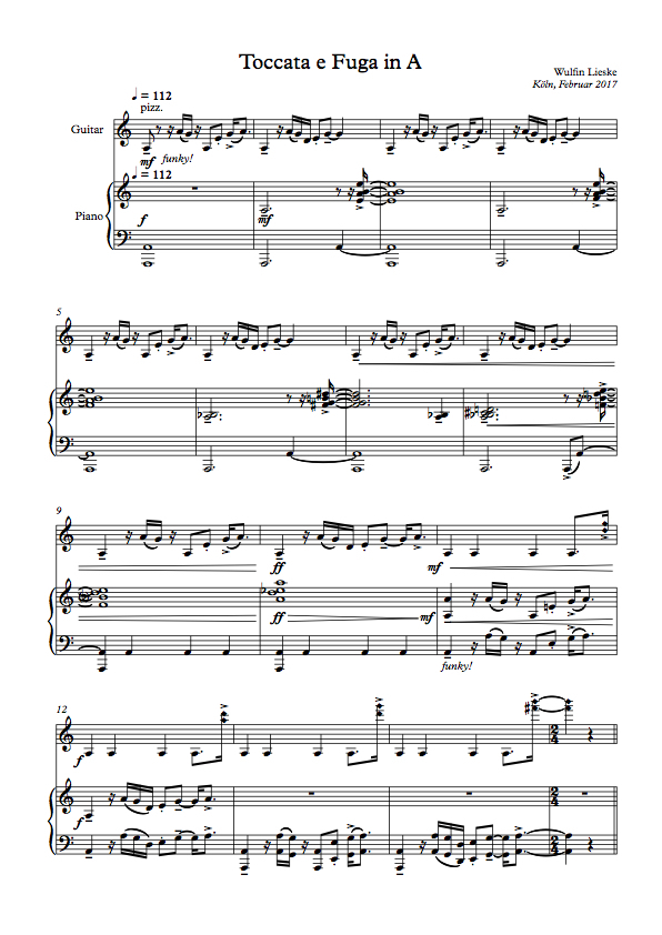 Ein fetziges Duo für Gitarre und Klavier im artPop Stil - hier treffen die Welten von Bach, Funk und Jazz zusammen...und doch entsteht etwas Neues.